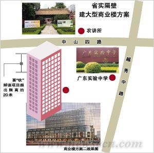 根據去年廣州通過的歷史文化名城保護規劃,中山四路位于歷史城區范圍,新建建筑最高的高度不能超過30米。但中山四路的商業樓項目提出的三個建設方案,都超出了這個限高范圍,與會專家就此展開了最激烈的討論。因為根據該地區原先的法定控規,容積率可以達到方案建設高度符合的5.6,如果要砍掉其超出30米部分的高度,政府要對業主方進行經濟補償;如果不砍掉其高度,則擔憂對農講所和周邊圖書館等文化建筑造成影響。