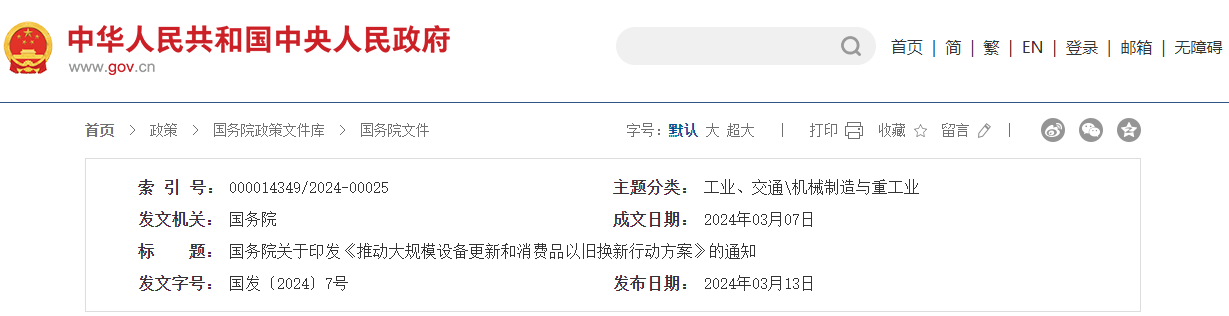 現將《推動大規模設備更新和消費品以舊換新行動方案》印發給你們,請認真貫徹執行。